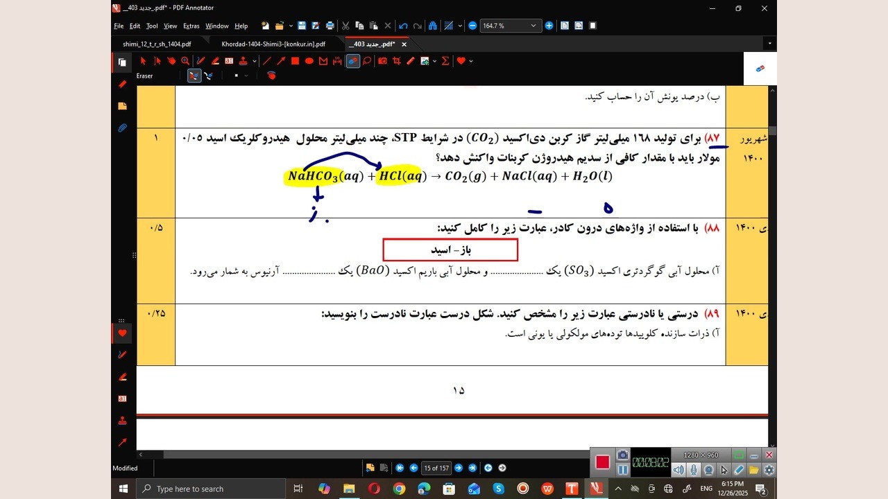 تحلیل سوالات نهایی فصل یک شیمی دوازدهم ( بخش2) بازدید : 6 1 لایک danial13z منتشر شده در تاریخ 05 دی 1404 19:53 ادامه تحصیلات و یادگیری