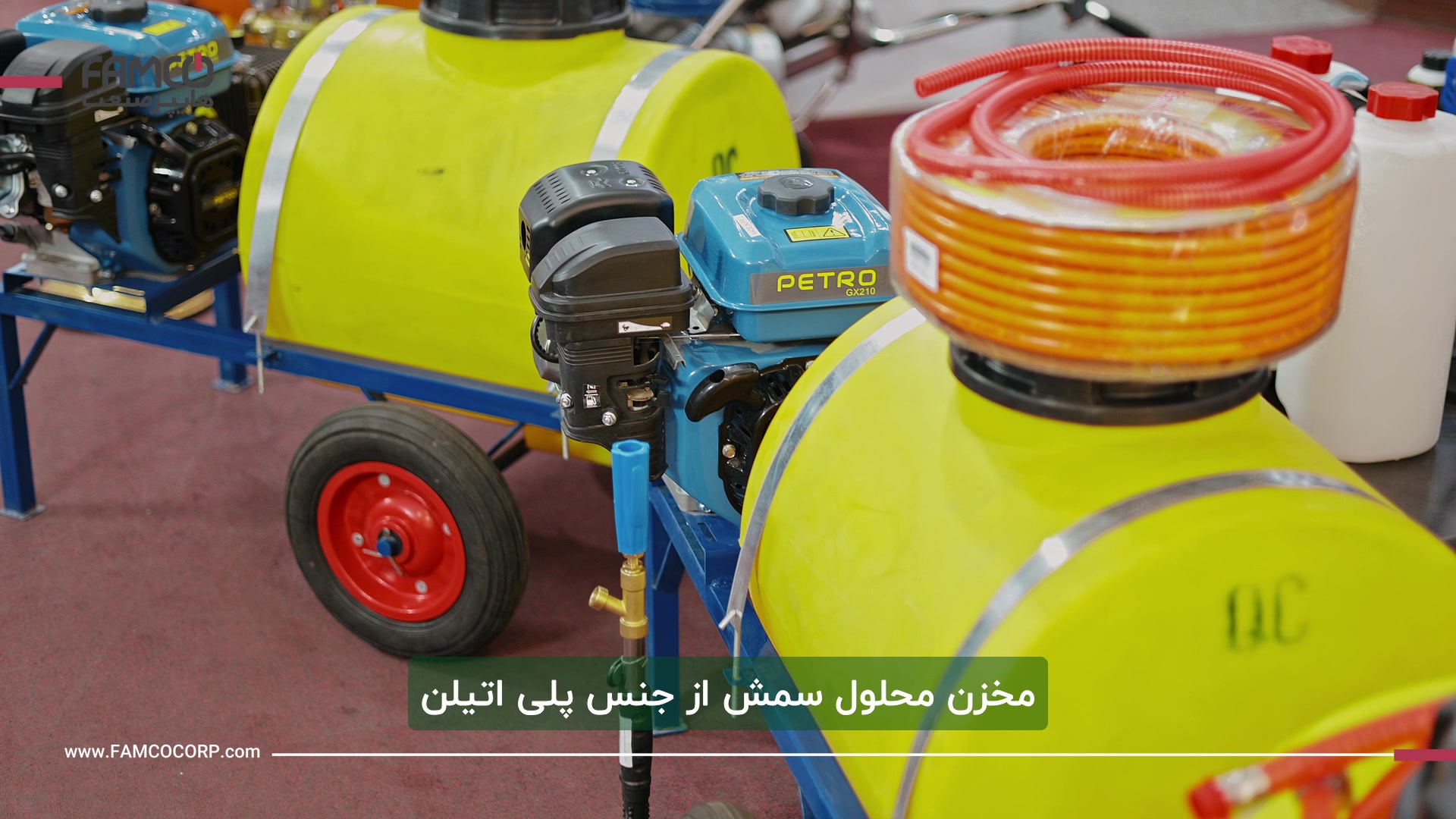 سمپاش فرغونی چیست؟ سم پاش فرغونی نیروی خود را از یک موتور بنزینی می گیرد و سم پاش چرخ دار فرغونی دارای پمپ و شیلنگ و مخزن با حجم های متفاوت می باشد. موتور سم پاش فرغونی، احتراقی و بیشتر از نوع بنزینی است و دارای حجم های مختلفی است. سم پاش موتوری چرخ دار برای سمپاشی درختان مناسب است، چون میزان پرتاب سم توسط لانس قابل تنظیم است. مدل های 100 و 200 لیتری روی شاسی با دو چرخ سوار هستند و به راحتی در زمین کشاورزی حرکت می کنند و به همین دلیل به آن ها سم پاش فرغونی یا سم پاش موتوری چرخ دار می گویند. طول پاشش سم حدود 8 متر مفید و با تنظیم لانس به صورت تیزپاش تا حدود 15 متر بوده و میزان سمپاشی 10 الی 20 لیتر در دقیقه است. انتقال سم از مخزن سم به لانس یا نازل از طریق یک شیلنگ 50 یاردی (کمی بیش تر از 45 متر) انجام می شود که می تواند سه لایه یا 5 لایه باشد. البته در صورت نیاز می توان از شیلنگ به طول 100 یارد (کمی بیش از 91 متر) نیز برای انتقال سم به نازل استفاده کرد. در سم پاش فرغونی سرعت سمپاشی کردن بالا رفته و منجر به صرفه جویی در مصرف سم می شود. ویژگی مثبت دستگاه سمپاش فرغونی دارا بودن مخزن روی شاسی و سهولت حمل و نقل دستگاه نسبت به سمپاش های زنبه ای است. https://www.famcocorp.com/pcat/171037/%D8%B3%D9%85%D9%BE%D8%A7%D8%B4-%D9%81%D8%B1%D8%BA%D9%88%D9%86%DB%8C تلفن: 48000049-021 (120 خط) داخلی: 625، 620، 622