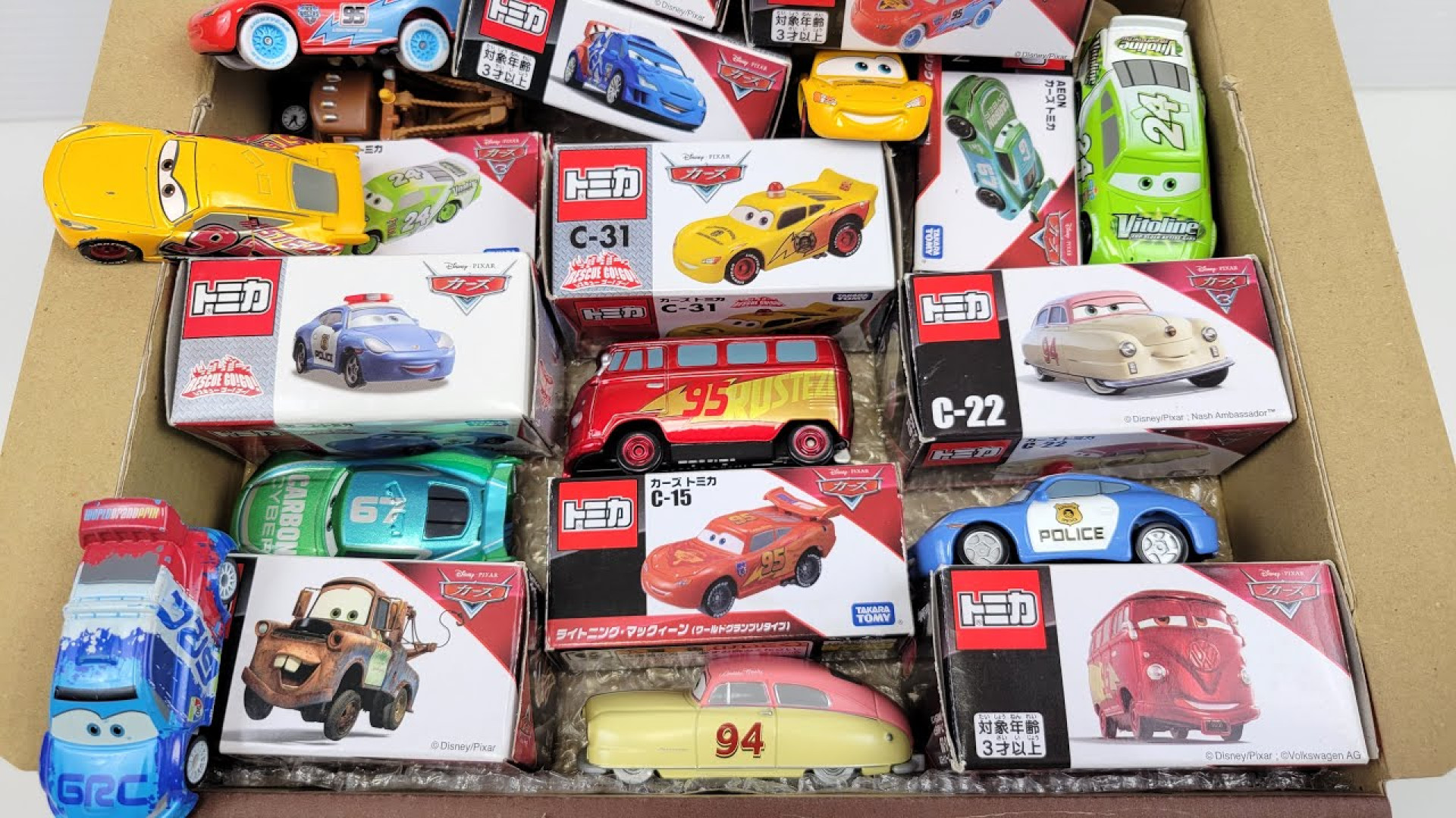 11 types of Tomica Cars Return the Tomica minicar to the box with the same design Disney Cars Return the Cars minicar to the Tomica box. Fillmore, Lightning McQueen, and Disney Cars friends will appear. #Minicar #Tomica #Toys