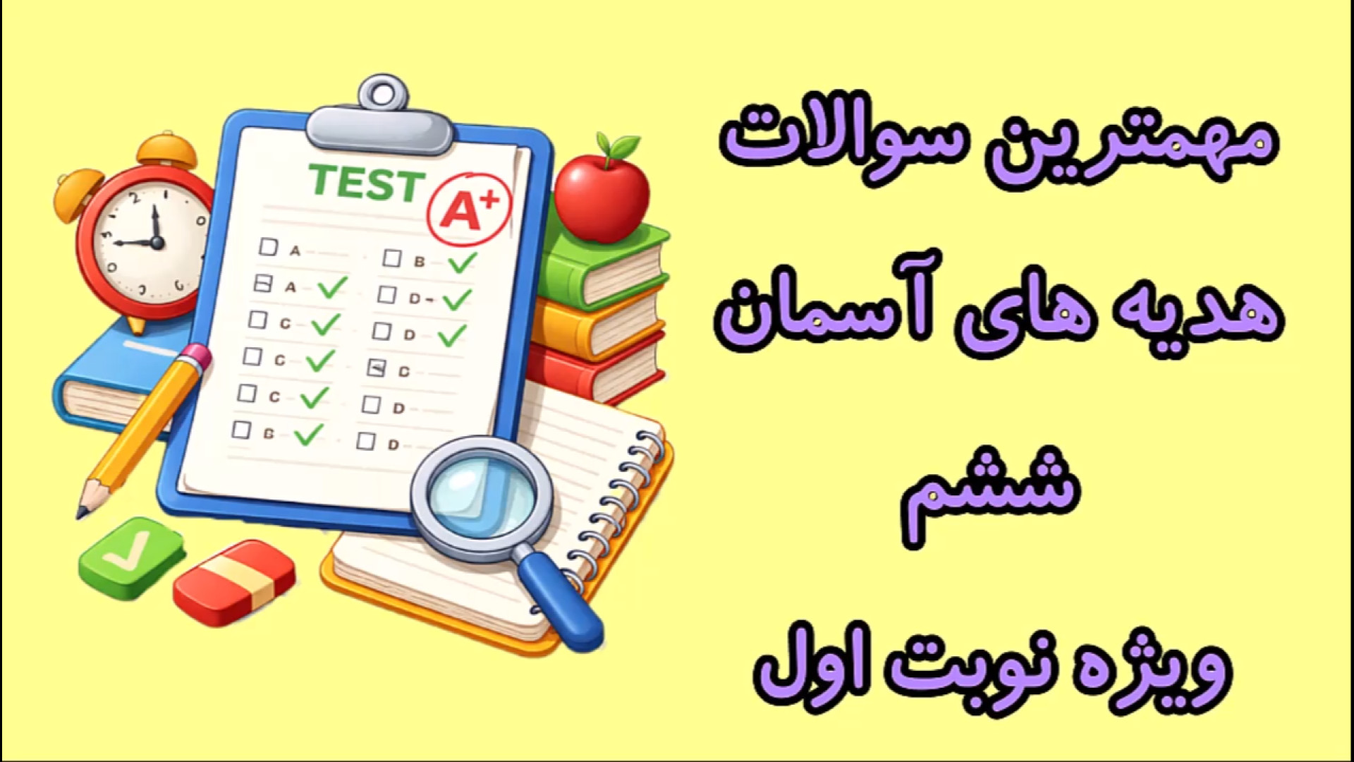 20 سوال مهم و پرتکرار امتحانی برای نوبت اول هدیه های آسمان ششم درس های 1 تا 9 رضایی