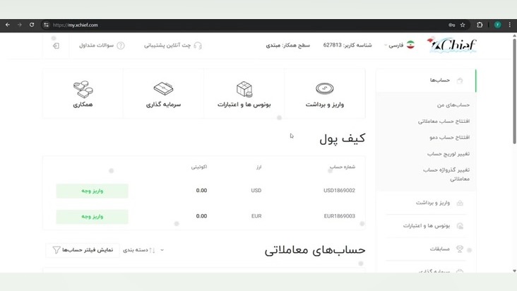 نکته بسیار مهم: این گیفت کارت فقط برای دانشجوهای دورههای آکادمی شایان هست. اگر حساب ایکس چیف ندارید، ابتدا حساب کاربری خود را بسازید: https://my.xchief.com/registration/?a=shayanfx وارد ناحیه کاربری خود شده و از منوی "بونوس ها و اعتبارات" گزینه "کوپنهای پرومو" را انتخاب نمایید. https://my.xchief.com/bonuses-credits/promo?lang=fa مراحل دریافت گیفت کارت: ۱. مراحل احراز هویت خود را تکمیل نمایید. ۲. یک حساب MT4.DirectFX بسازید. (توجه داشته باشید که حساب نباید دارای تاریخچه معاملاتی باشد.) ۳. در باکس اول، حساب معاملاتی که ساختهاید را انتخاب کنید و در باکس دوم، کد گیفت کارت دریافتی را وارد نمایید. شرایط برداشت وجه از گیفت کارت: تنها پس از اینکه گردش مالی حساب به ۳ لات رسید، میتوانید حداکثر ۱۰۰ دلار از حساب گیفت کارت برداشت کنید. گردش مالی توسط سیستم محاسبه شده و هر ۲۴ ساعت بروزرسانی میشود. میتوانید گردش مالی خود را از طریق لینک زیر بررسی کنید: https://my.xchief.com/bonuses-credits/promo?lang=fa نکات مهم: ۱. گردش مالی مورد نیاز برای گیفت کارت ۱۰۰ دلاری برابر با ۳ لات است. ۲. این گیفت کارت فقط به مدت ۳۰ روز معتبر بوده و در صورت عدم دستیابی به گردش مالی مورد نیاز در این مدت، گیفت کارت به همراه تمام سودهای حاصل لغو خواهد شد. شرایط محاسبه گردش مالی: گردش مالی فقط برای جفتهای زیر محاسبه میشود: AUDCAD, AUDCHF, AUDJPY, AUDNZD, AUDUSD, CADCHF, CADJPY, CHFJPY, EURAUD, EURCAD, EURCHF, EURGBP, EURJPY, EURUSD, GBPAUD, GBPCAD, GBPCHF, GBPJPY, GBPUSD, NZDCAD, NZDCHF, NZDJPY, NZDUSD, USDCAD, USDCHF, USDJPY, USDSGD, XAUUSD (Gold), XAGUSD (Silver). گردش مالی تنها برای معاملاتی محاسبه میشود که دارای شرایط زیر باشند: حداقل مدت زمان باز بودن معامله (ثانیه) حداقل ما به تفاوت باز و بسته شدن معامله (پیپ) جزئیات مربوط به هر ابزار در صفحه مشخصات قرارداد موجود است: https://www.xchief.com/fa/trading-conditions/specifications