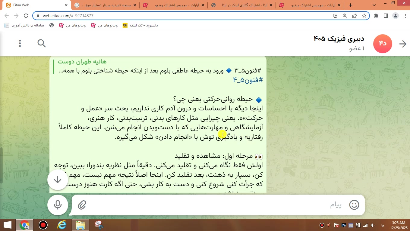 فنون تدریس استاد صفایی فصل 5 قسمت 4 حیطه روانی حرکتی بازدید : 2 0 لایک دبیری فیزیک استخدامی آموزش و پرورش منتشر شده در تاریخ 04 دی 1404 04:30 ادامه تحصیلات و یادگیری