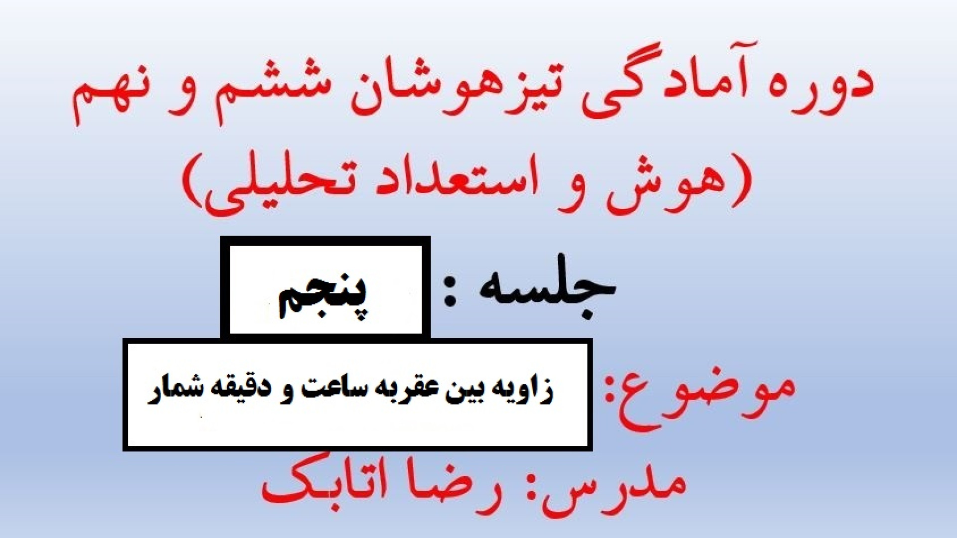 دوره آموزش تیزهوشان ششم و نهم جلسه 5 -زاویه بین عقربه ساعت شمار و دقیقه شمار