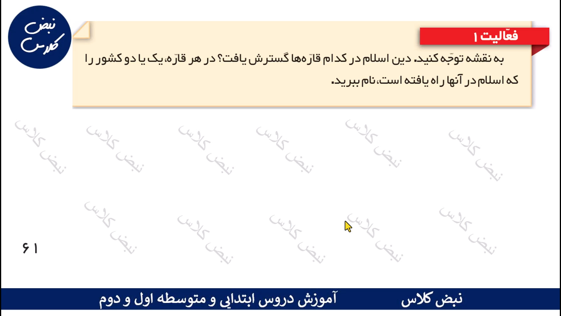 صفحه 61 مطالعات ششم نبض کلاس « آموزش دروس ابتدایی و متوسطه اول و دوم »