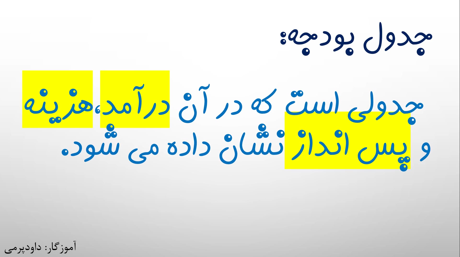 جدول بودجه...درآمد.. هزینه..پس انداز..مطالعات چهارم...داود پرمی بازدید : 8 1 لایک مفهوم سازی و یادگیری بهتر (داود پرمی) منتشر شده در تاریخ 05 دی 1404 21:38 جدول بودجه...مطالعات چهارم...درآمد...هزینه...پس انداز...داود پرمی ادامه تحصیلات و یادگیری