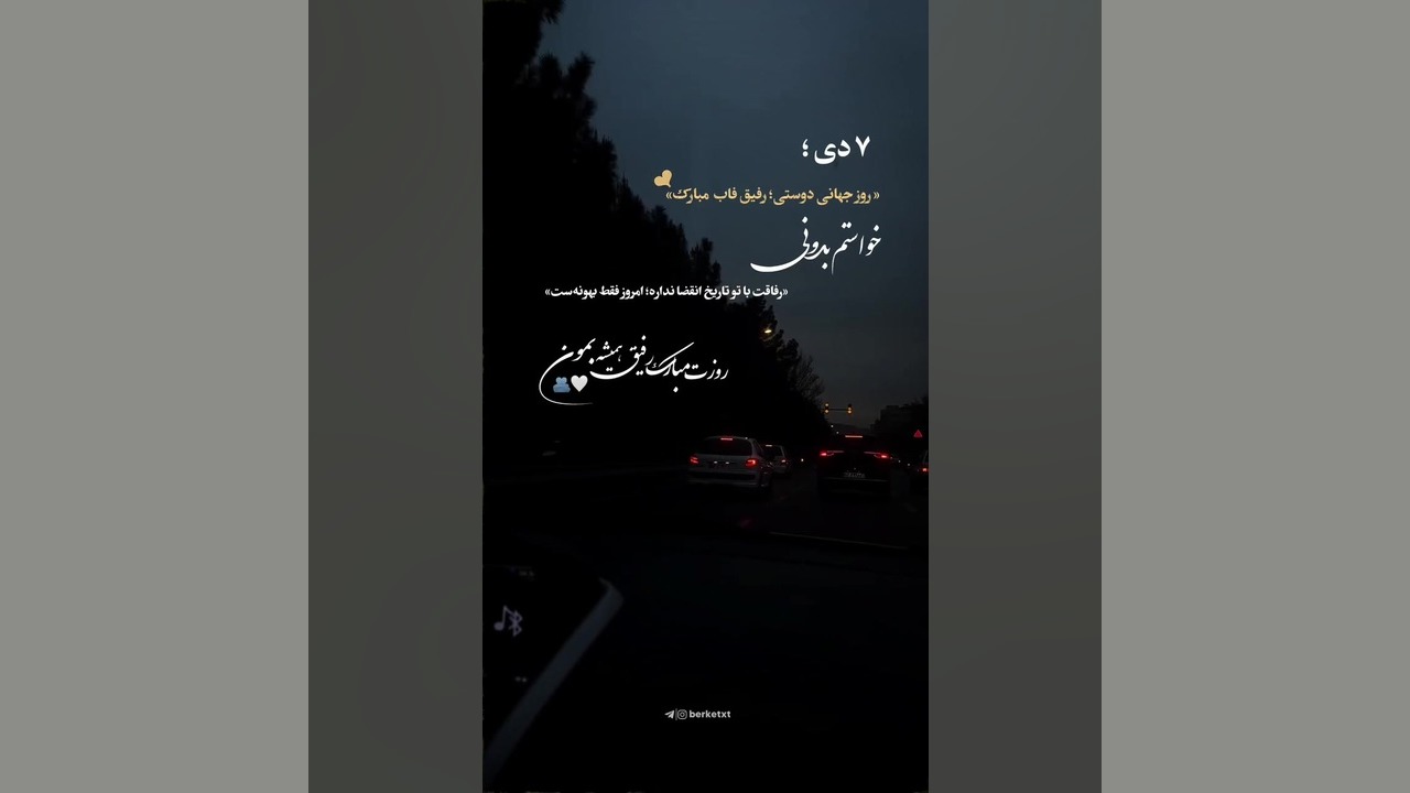 ۷ دی روز جهانی دوست ، روزت مبارک رفیق بازدید : 143 0 لایک فیلم و سریال و کلیپ منتشر شده در تاریخ 05 دی 1404 23:36 ادامه فیلم، سریال و مستند