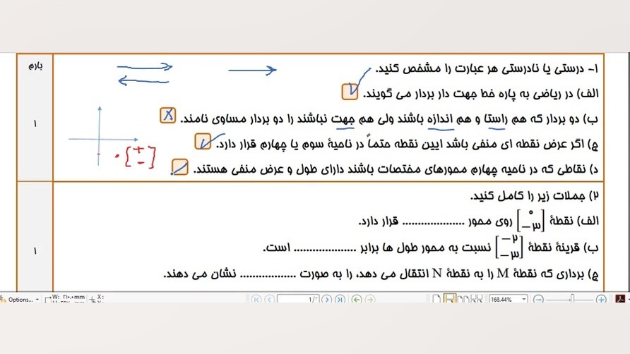 حل سوالات آزمون پایانی از فصل هشتم ریاضی هفتم