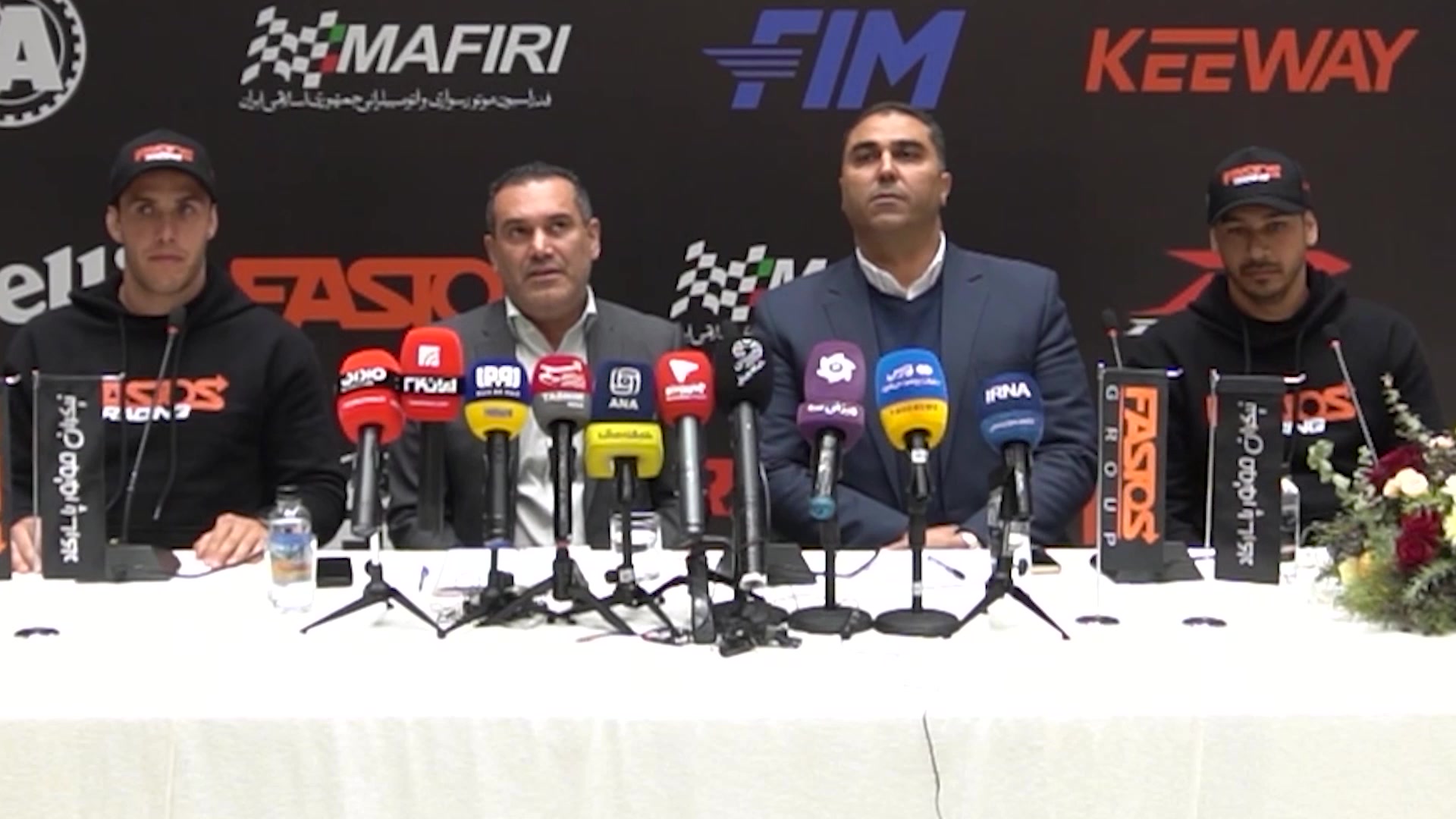 دقایقی از نشست خبری باحضور محمدرضا پازندمهر رییس فدراسیون موتور سواری و اتومبیلرانی محمودغلامی مدیر عامل گروه فستوس ماریو رومان قهرمان موتوراندرو جهان و داریوش قربانی قهرمان ایرانی موتوراندروجهان